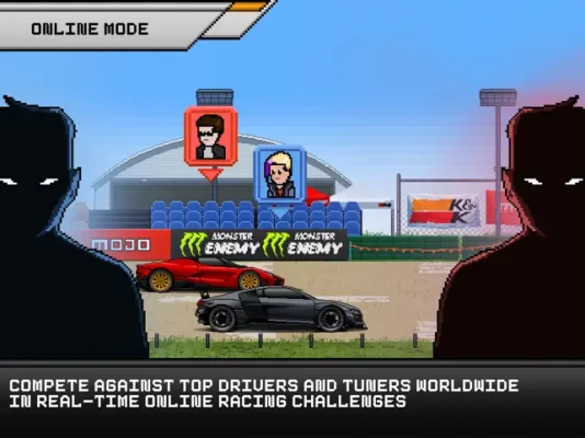 One of the most challenging drag racing pixel retro games with countless features to build cars, tune, and race with your favorite cars!