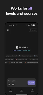 Whether you're struggling with calculus, tackling a tough physics problem, or getting a handle on chemistry, Plusfinity offers a personalized learning experience. Our app doesn’t just give answers—it walks you through each step, ensuring you understand the process.