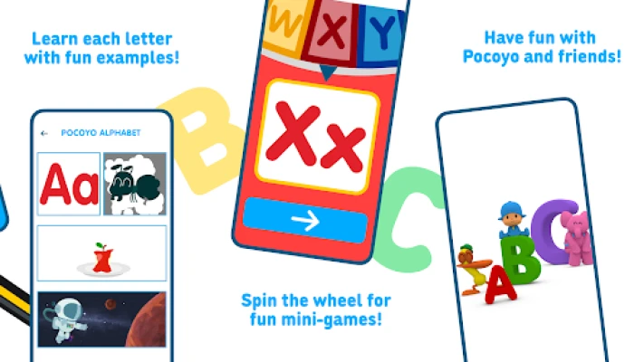 Pocoyo Alphabet ABC, will help to understand and learn the letters and sounds of the phonetic alphabet. The game will allow through effective methods based on learning games, to learn the letters and improve reading and writing with a very attractive and intuitive interface even for young children.