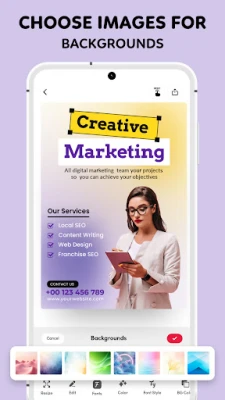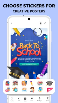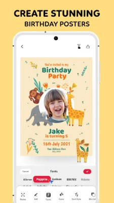 The Poster app offers the best editing tools to design posters, flyers, and logos like a professional. To start creating the image, launch the Poster Maker app now: