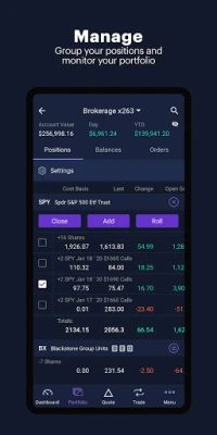 ■ Quickly execute options orders up to four legs with our customizable options chain