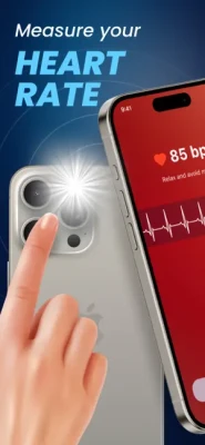 The app calculates the pulse or heart rate using built-in smartphone sensors and devices (camera, LED flashlight, etc.).