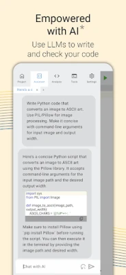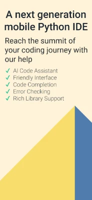 ✓ Professional Programmers: AI support combined with code completion and checking makes some real mobile development possible even on a mobile device. Run the most sophiscated code with our custom Python build and even deploy it to the other users of the app