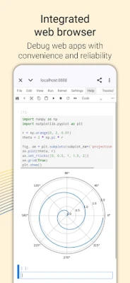 ✓ Students & Learners: Learn Python effeciently with a simple and friendly UI. There are example programs available for a easy quick start of your programming journey. Use integrated browser to access a wide range of jupyter notebook learning courses and tutorials right from the app
