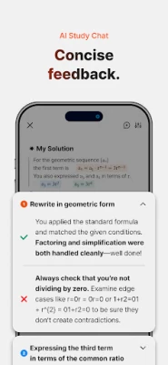 AI even spots mistakes you missed, so you can fully understand while studying alone. Now it’s even easier in chat! Try asking, “Explain this step again,” or “Give me an easier example.”