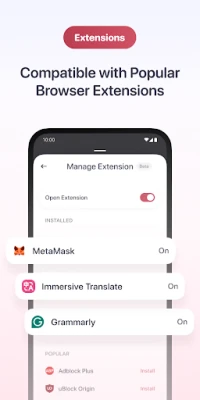 Enhance your browsing experience with extensions. Quetta Browser is a great alternative to Kiwi Browser. You can now personalize your experience in Quetta with extensions such as cookie management, speed control for videos and audios, and manage your passwords.