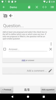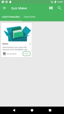 The application comes with a single embedded questionnaire file "demo.qcm" that will allow you to discover and experience the possibilities offered by the application. Then you will be able to create your own or receive new quiz files (*.qcm) from your contacts to play or re-edit them.