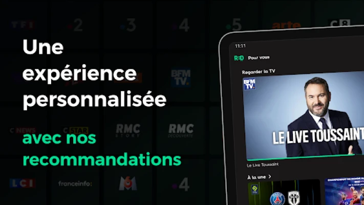 • A l’ouverture de l’application, accédez aux meilleurs contenus Live.