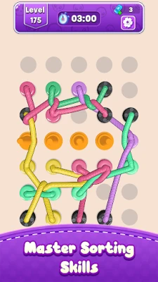Strategic Pin Placement: Master the art of moving twisted ropes around fixed pins and unraveling each tangle with finesse.