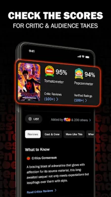 Join a vibrant community of movie and TV lovers. Rotten Tomatoes connects you with critics, celebrities, and even your friends, creating a space to share opinions and discover new favorites together. Read the reviews, check the scores, find movie news, and even ask aRTi, your higher-intelligence search assistant, what to watch next.