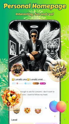 Chat - Chat directly with friends from all over the world in the Voice Party Room or Video Party Room.