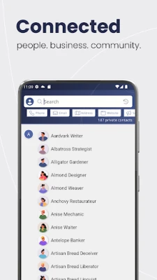 • Business Card Mode: Toggle between personal and professional networks instantly.