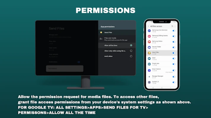 Send Files to TV - Android TV is a great app that lets you send any type of file from your phone or tablet to Android TV, Google TV and Fire TV incredibly fast. You can also send files from your TV to other devices. Sending Files to Android TV is very fast and easy with Send Files to TV - Android TV.