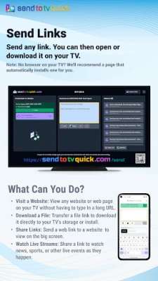 Direct URL Injection: Simply paste download URLs (APK, ZIP, M3U) on your phone via sendtotvquick.com. The file downloads and prompts for installation on the TV instantly.