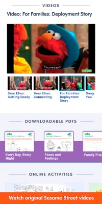 About Sesame Street for Military Families This app and its materials are an extension of Sesame Workshop’s ongoing efforts to support our troops and their families. Related materials include the Feel Electric! app for military children, social media including Facebook.com/SesameStreetForMilitaryFamilies, and the website MilitaryFamiliesNearAndFar.org, which provides engaging tools for military children to create, communicate, and stay connected.