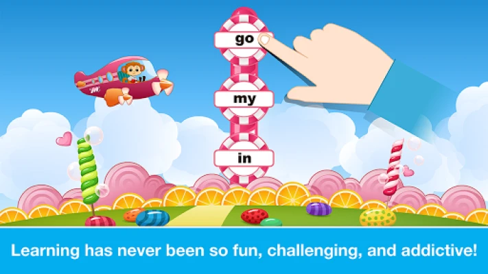 Complete a word recognition challenge! Tap on the words called to ripen the candy fruit. Once all the fruit is ripe for picking, drag the fruit to the hungry little monster to feed it!