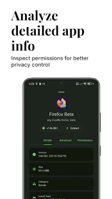 • Inspect permissions used by each application for better privacy control