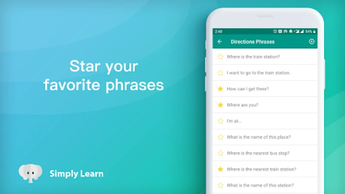 Use the Simply Learn Languages phrasebook to survive in any country. All important survival phrases are included.