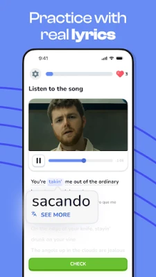 Singit makes learning English easy and enjoyable by combining music with interactive lessons. Follow lyrics, get pronunciation feedback, and learn new words in context—all while listening to songs you love.