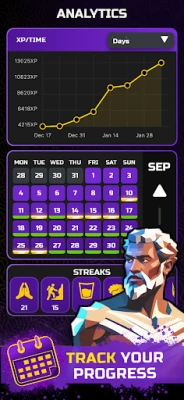 - An effortless and fun habit tracker with clear goals that slowly increase in difficulty