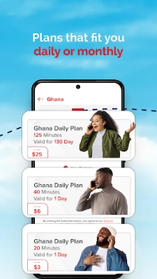 Daily and monthly international calling plans.