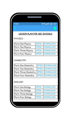 > It contain - Scheme of work for English medium schools - Scheme of work for Swahili medium schools - Scheme of work for Secondary schools (form 1 - Form 6) - Lesson plans - Log books >All materials you can download for printing > Also there are suggested teaching aid for all topics