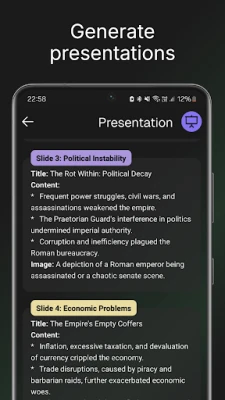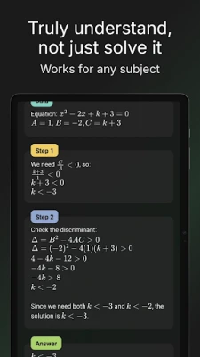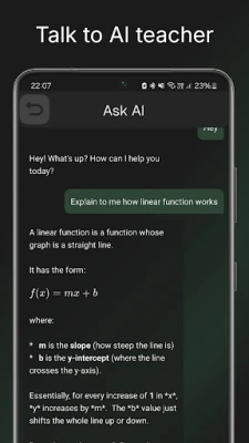 ✅ Understand each part of your homework with clear, step-by-step explanations ✅ Ask follow-up questions to dive deeper into any concept. ✅ Chat with an AI teacher for on-demand support. ✅ Smart study tools: generate presentation content, convert audio to notes, and analyze literature texts.