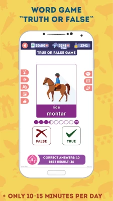 Review Past Material Many good apps do not pay enough attention to review past material! For this purpose we created the word game "True or False". It is very simple, but it's addictive and the most importantly, it helps to repeat past material and never to forget it!