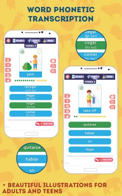 Do not need to know how to read If you cannot read yet, no problem! Each word has a transcription in your language! And for more experienced ones, in the settings, you can choose a phonetic (like in a dictionary) transcription.