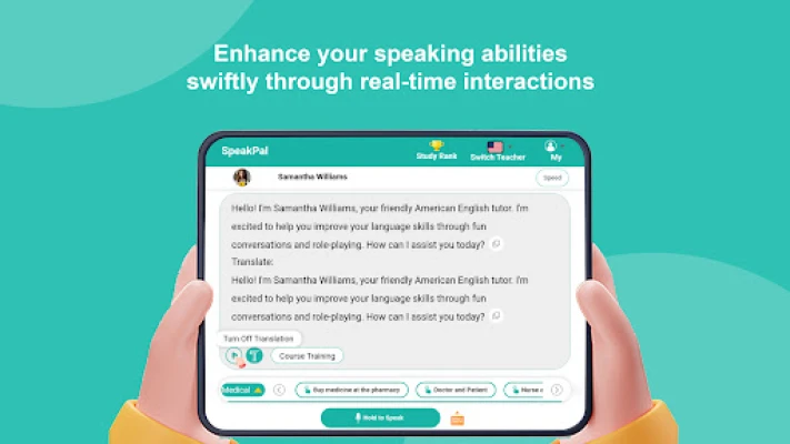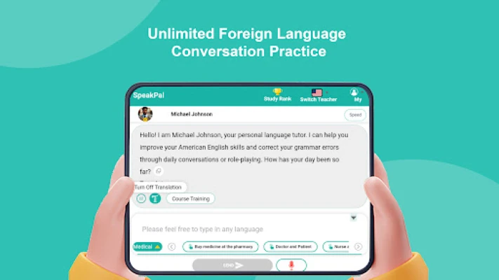 Looking for SpeakPal? You found it! SpeakPal-AI Language Learning is your personalized AI-powered language tutor, available 24/7. Dive into immersive role-playing scenarios and realistic daily conversations to master practical communication skills in over 30 languages. Whether you're aiming to refine your English, explore the nuances of Chinese, conquer Japanese kanji, or parlez-vous français like a native, SpeakPal has you covered. From Spanish and German to Korean, Russian, Portuguese, Italian, and beyond, SpeakPal helps you build vocabulary, polish your grammar, and gain the confidence to speak fluently. Download SpeakPal now and unlock your language learning potential!