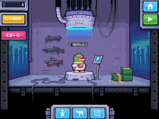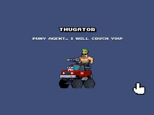 Special Agent CyberDuck is an action-packed pixelart platform game. CyberDuck and his team of Special Agents must run, jump and shoot their way through levels of fast-paced, explody mayhem. Defeat the minions, rescue the hostages, dodge obstacles, figure-out puzzle elements and ultimately confront GODBOT to beat the game! Then do it again on Suicide mode! Are you up for the challenge?