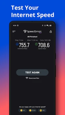SpeedSmart Mini is a free lightweight internet speed test to help you see exactly how your internet connection is performing. With just a single tap SpeedSmart Mini will measure your download and upload internet speed in under 15 seconds.