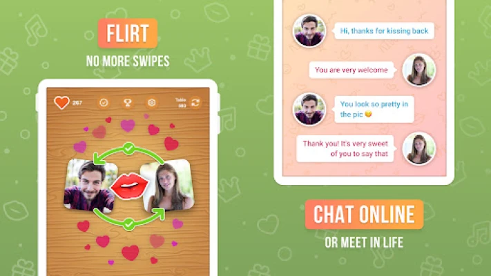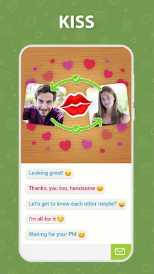 - Random chatting: chat with strangers, talking to people in kiss game & make friends!