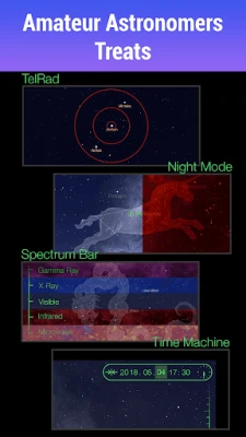 ✦ Identify stars, constellations and planets in the night sky with our mobile observatory. Night mode bathes the interface in a red glow in order to make the sky observation more comfortable for your eyes.
