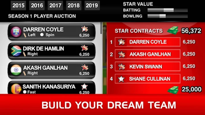 Choose from more than 50 Star Players to bolster your squad. Star Batsmen are more likely to clear the rope, while a signing a miserly Star Bowler will ensure the targets you chase aren’t as demanding.