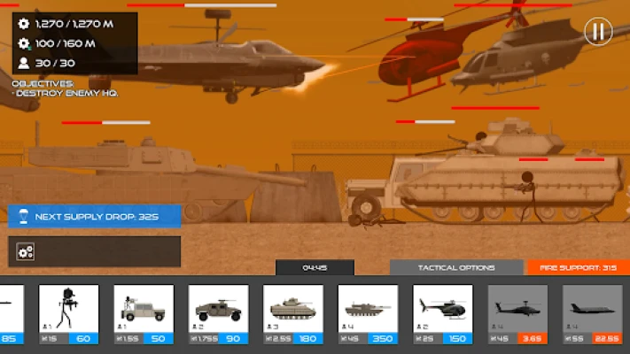 - Diverse Unit Types: Deploy a mix of Ground and Air units.