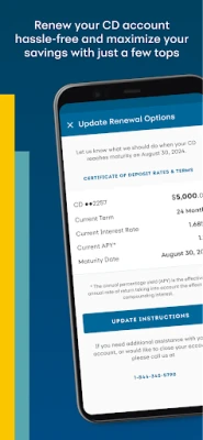 • Renew your CD accounts to keep your savings growing in just a few taps