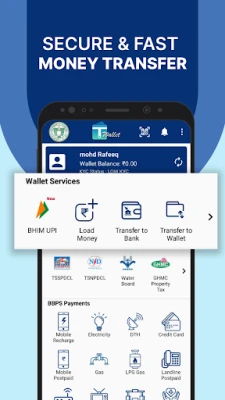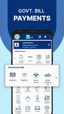 T Wallet, the official digital wallet by Government of Telangana, makes digital payments for both government and private services with ease. With T Wallet, one can do Money Transfer, Bank Transfer, Mobile Recharge, Metro Card Recharge, Electricity Bill Payment, Water Bill Payment, Property Tax Payment, Travel Tickets Booking, Online Recharges and other digital Bill Payments.