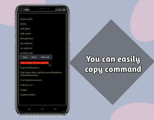 - You can Copy commands from app.