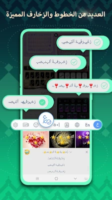 2: خطوط زخرفية وتُمكن المستخدم من تفعيلها على لوحة المفاتيح، وتظهر عند الكتابة وعند المستلم ايضاً.
