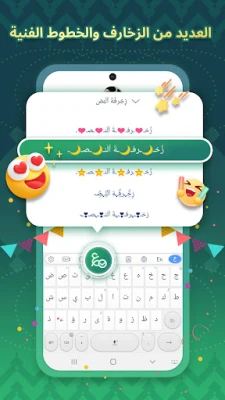 2: خطوط زخرفية وتُمكن المستخدم من تفعيلها على لوحة المفاتيح، وتظهر عند الكتابة وعند المستلم ايضاً.