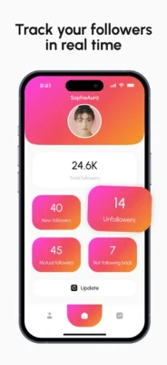 Track Followers Unfollowers lets you see how your Instagram presence changes over time. From follower gains to losses, the app provides clear visual insights into your profile’s activity.