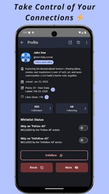 Profile Actions: Follow, unfollow, block, or unblock users directly from their profile. Add private labels for better organization.