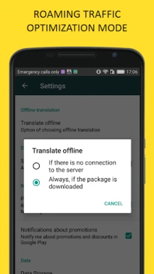 Special mode which allows you to minimize mobile web traffic when you translate during travel abroad.