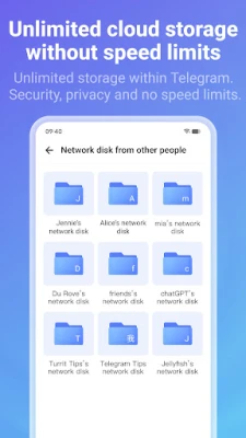 Support for unlimited speed and space to save Telegram files, with one-click sharing supported.