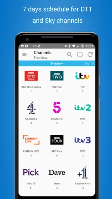 Cisana TV + is a TV guide for UK and IE DTT and satellite television. Thanks to the complete 7-day schedule of each broadcaster, you can plan in advance which programs to watch on television in a quick, simple and intuitive way.