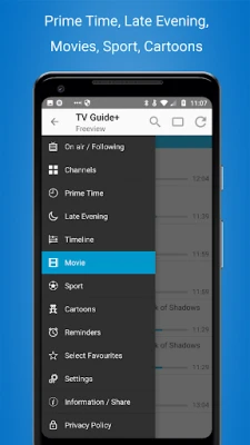 For programs currently on air, a bar is shown that visually indicates how long the broadcast has started and how long it is until the end of the broadcast. You have a handy timeline for an overview of the schedules and sections where only movies, sports programs and cartoons are listed. You can set your favourite channels in order to make the consultation faster.