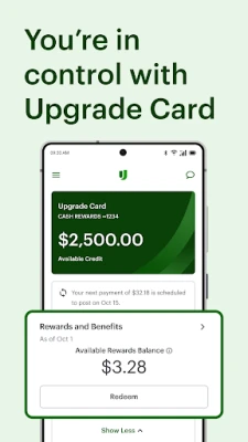 ● Manage Upgrade Card or Personal Loan, Flex Pay buy now pay later, Upgrade Card, Auto Finance, Auto Refinance and Home Improvement through Upgrade accounts. Make payments and check your balance.