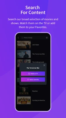 It provides all of the functions of your TV remote and more. Key Features: - Power On / Off - Volume Control - Change Channel - Share Video / Music / Photo to TV - Search VoD