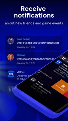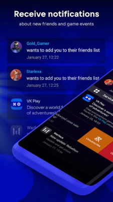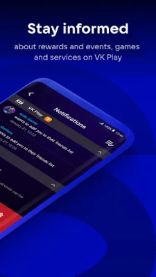 Receive notifications from your favorite VK Play games and services. Be the first to know about unique game promos, new friends, and gifts!.
